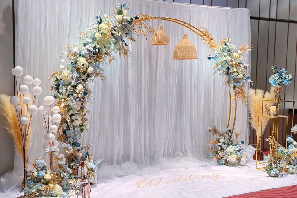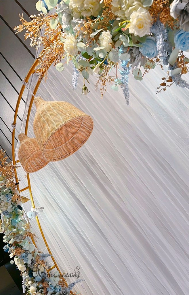 #Wedding #半圓拱門 #霧藍色 #莫蘭迪藍 #雙層白 #紗幔系列 #高雄婚禮佈置 #鼓山婚禮佈置