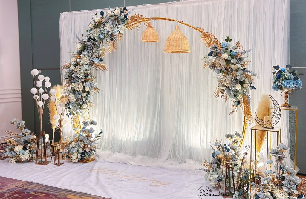 #Wedding #半圓拱門 #霧藍色 #莫蘭迪藍 #雙層白 #紗幔系列 #台南婚禮佈置 #安平婚禮佈置