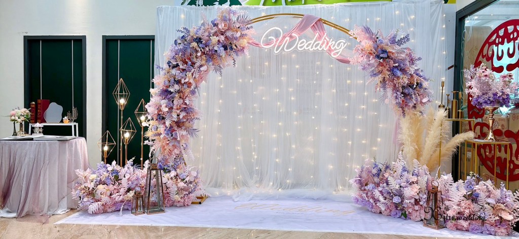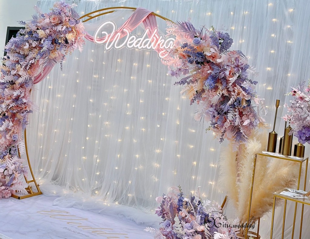 #Wedding #半圓拱門 #紫粉色 #浪漫系 #雙層白 #紗幔系列 #彰化婚禮佈置 #埔鹽婚禮佈置